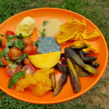 Our diet consists of predominantly whole plant foods: fruits, vegetables, nuts, seeds, grains, raw and cooked. Some edible mushrooms are foraged from the land. All vegan food is allowed, other than ultra-processed foods.