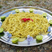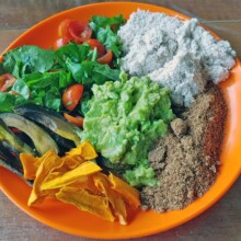 Beside fruits, we have a fairly good amount of katuk and turmeric, sugarcane, a little bit of taro and some cassava. Sometimes: tropical lettuce, sweet potato, ginger, corn, sweet potato, and nuts.